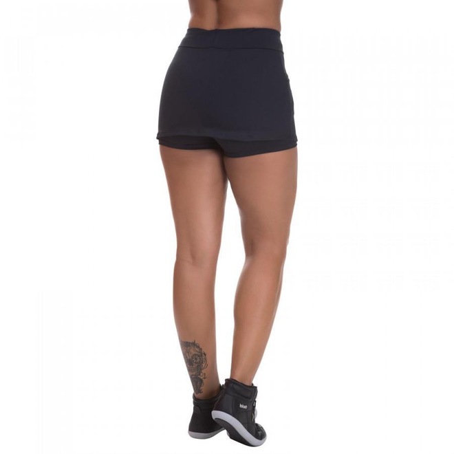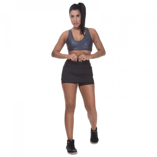 Este shorts saia foi desenvolvido em poliamida com cós em dupla camada pra dar sustentabilidade ao abdômen.