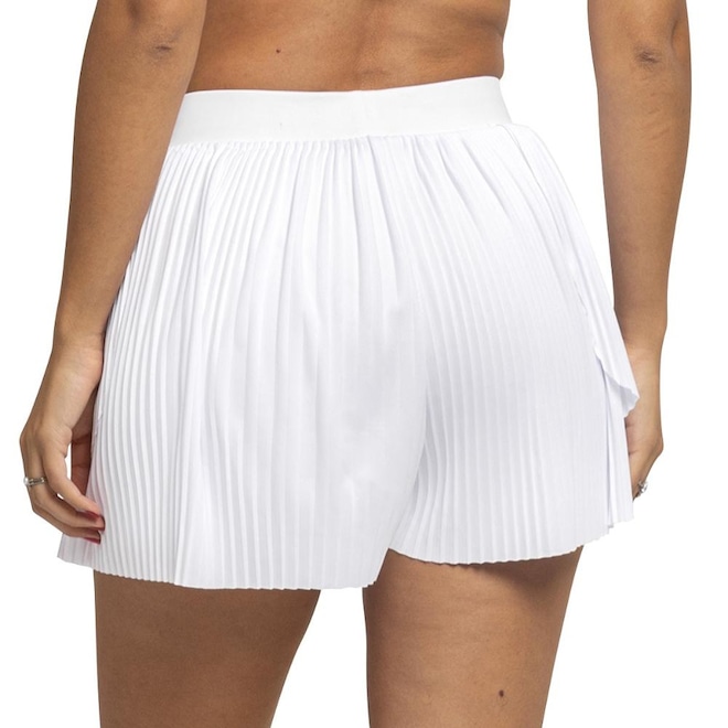 - Detalhamento: Shorts com design em duas camadas: a externa em tecido plissado leve que traz estilo e fluidez, e a interna em modelagem justa que garante suporte, conforto e liberdade de movimento. O cós elástico com o nome da marca em destaque emborrachado oferece ajuste firme e um toque exclusivo, ideal para treinos e partidas com máxima mobilidade;