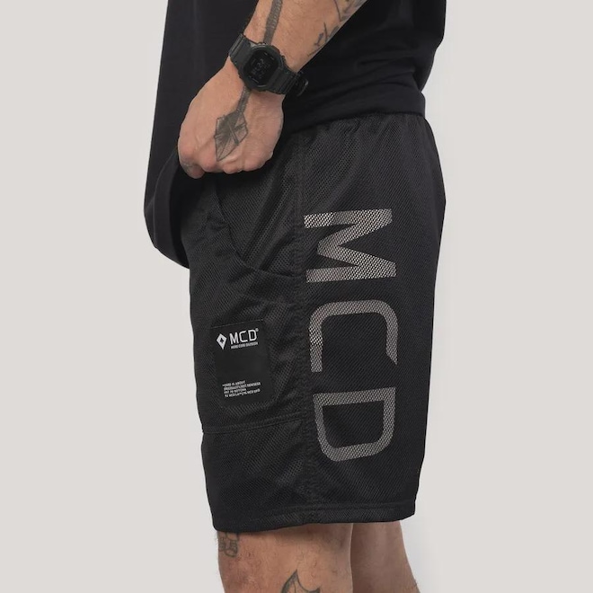 · Etiqueta MCD vertical grande na parte inferior do bolso.