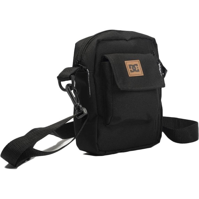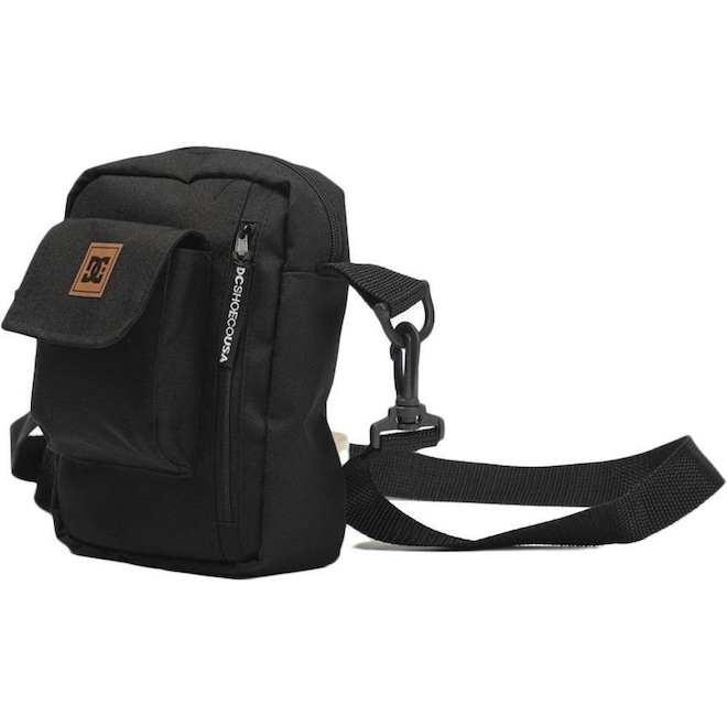 Shoulder bag DC Shoes de nylon 600, compartimento principal com fechamento de zíper, bolso frontal cargo com lapela e fechamento em fita dupla aderente, bolso frontal vertical com fechamento de zíper, bolso traseiro em mesh com fechamento de zíper, patch de material não natural aplicado no painel frontal, alça ajustável e etiquetas personalizadas.