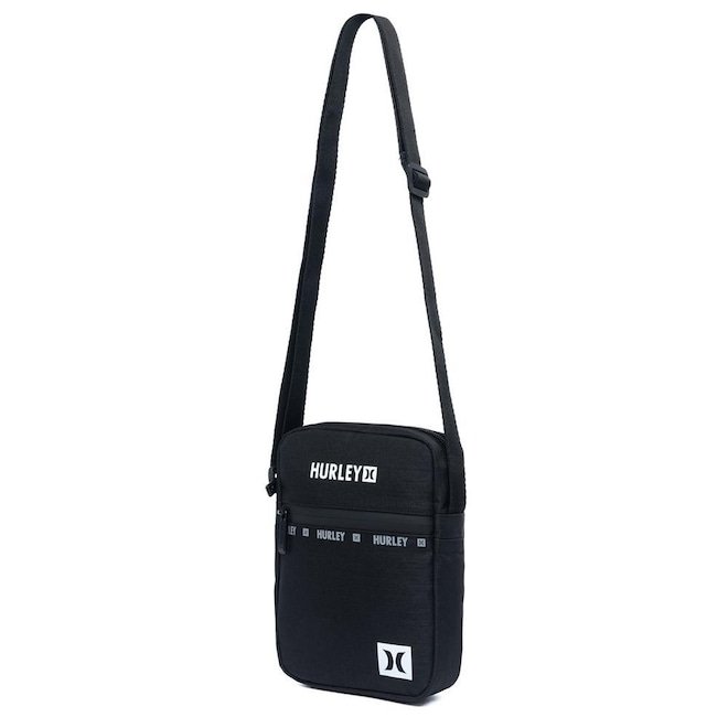 Shoulder Bag Hurley com compartimento principal, compartimento frontal, alça ajustável e etiquetas personalizadas.