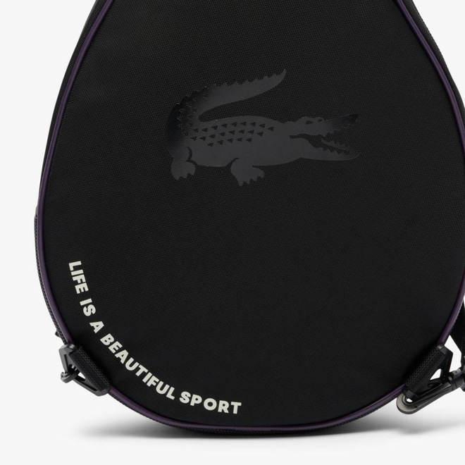 Essa bolsa de tênis leve, para uso frequente, prática é desenvolvida para guardar a sua raqueta e mais alguns acessórios pequenos. O design icônico inspirado pela tradição de tênis da Lacoste, com acabamento com detalhes gráficos sofisticados. Além de uma alça ajustável para transporte confortável cruzada no corpo.