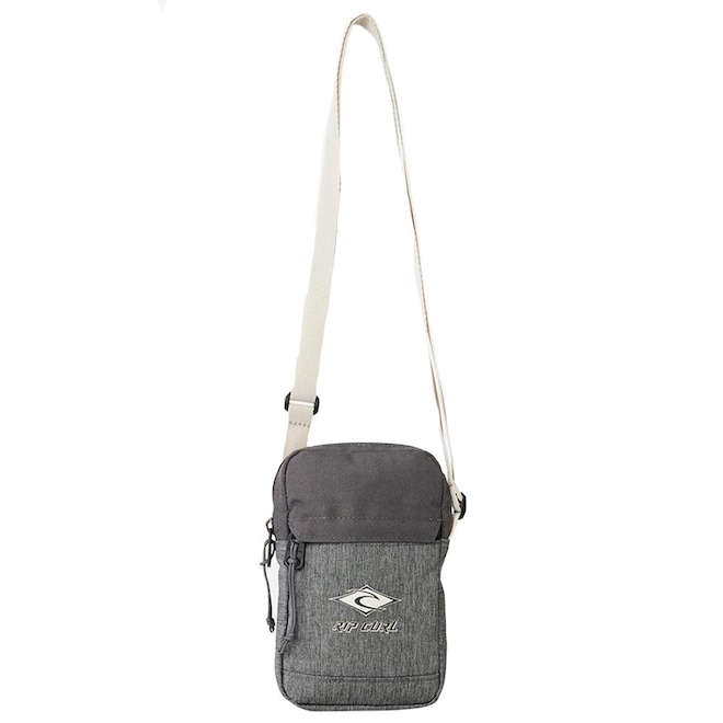 Shoulder Bag Rip Curl com múltiplos compartimentos, alça de ombro ajustável, bordado frontal e etiquetas personalizadas.