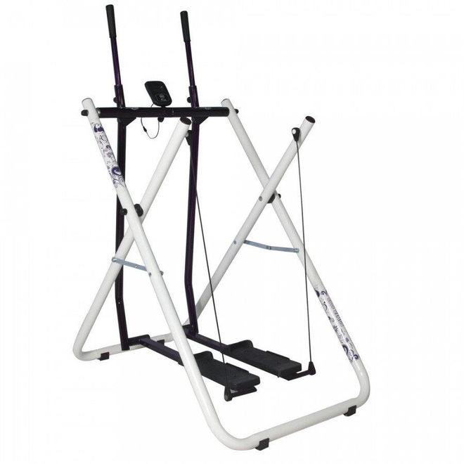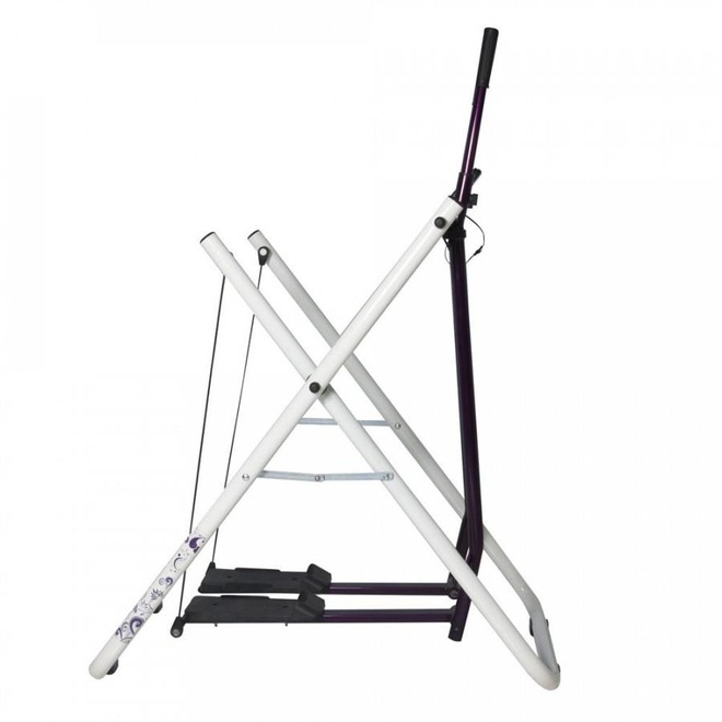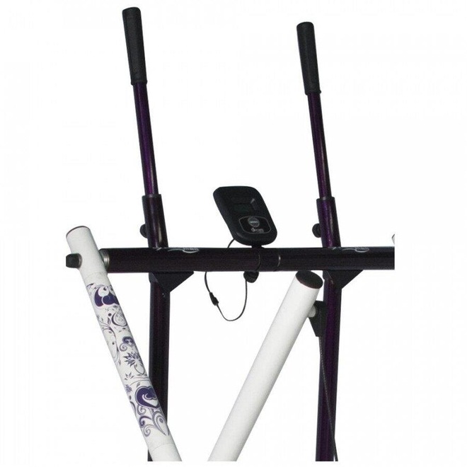 Simulador de caminhada para uso residencial, capacidade para até 110kgs, sem impacto, pés antiderrapantes, rolamentos na parte superior, material em aço carbono, barras superiores e pedaleiras para trabalho simultâneo de membros superiores e inferiores, painel com 5 funções: tempo, velocidade, distância, calorias e função scan.