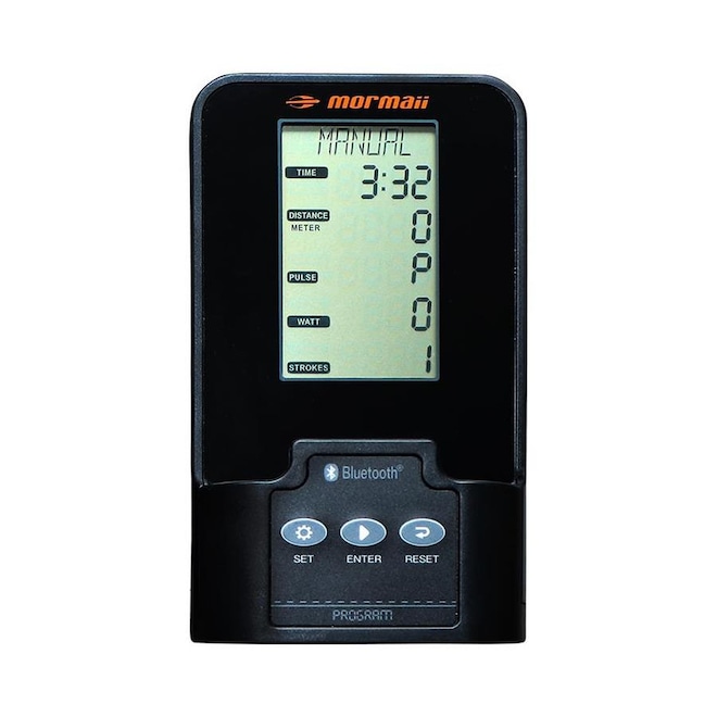 Acompanhe seus parâmetros e programe seus treinos através do painel completo e intuitivo com exibição de tempo, distância, calorias, SPM, remada, watt e frequência cardíaca*, além de programa de treino personalizado.