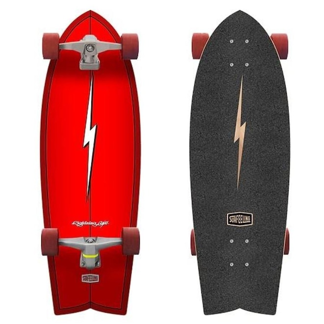 O Skate Simulador de Surf Surfeeling Lightning Bolt é o único com o raio oficial. O Lightning Bolt 32.3" possui gra?smo das pranchas clássicas dos anos 70 surfadas por nomes como Gerry Lopez, Rory Russel, entre outros. Seu entre-eixos de 18.5" junto ao seu formato largo, proporciona uma estabilidade ao mesmo tempo com respostas rápidas sem perder a linha suave de surfe.