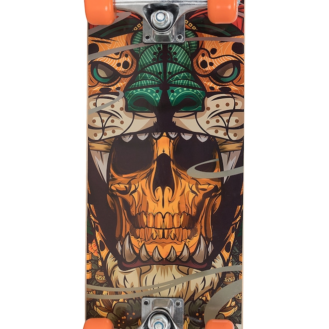 De modalidade street, o Skate possui shape resistente, lixa para estabilidade e trucks maciços em alumínio.