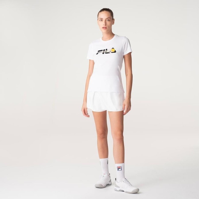 Com shorts interno e modelagem efeito drapeado, a Saia Feminina Fila Tennis Game Basic possui cós de 3 cm com pala de 9 cm, proporcionando máximo conforto. O modelo de design exclusivo traz patch F-Box bordado na lateral esquerda próximo à barra. Comprimento total: 36 cm.ref: M0ZXHP