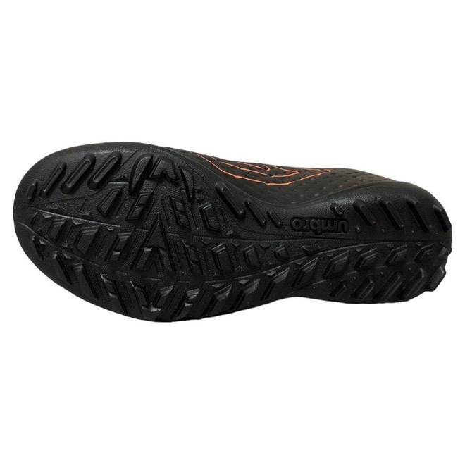 A Chuteira Society Umbro Warskin Jr é ideal para os jogadores mirins que procuram domínio e controle dentro do gramado sintético. Inovador e funcional, o cabedal traz grafismo em degradê e textura integral que utiliza um novo tipo de cilindro para proporcionar um melhor grip no momento do chute. Cabedal assimétrico construído em material laminado com frequência em rolo aplicada em todo a sua extensão, que oferece um grip superior quando ocorre o contato com a bola. Possui serigrafia em duas cores com efeito degradê, assinatura Warskin aplicada próximo ao atacador, Diamante Umbro em destaque na lateral e palmilha macia em EVA com tecido de poliéster forrado. O solado de futebol society HG é composto por PVC.ref: M14VFO