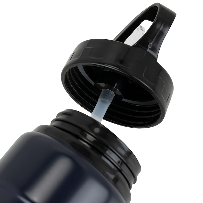 Com capacidade de 750ml, possui estrutura leve e resistente de alumínio, tampa rosqueada com bico dosador que evita vazamento e alça embutida para facilitar o transporte.