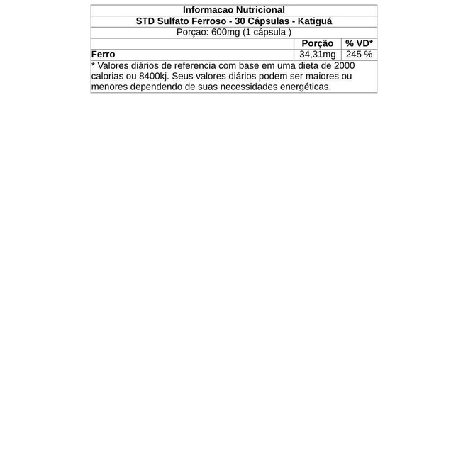Sulfato Ferroso - 30 Cápsulas - Katiguá - Foto 1