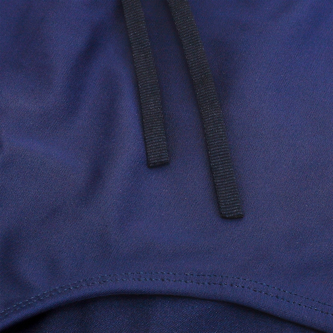 O cós com cordão e elástico oferece segurança e conforto personalizado.