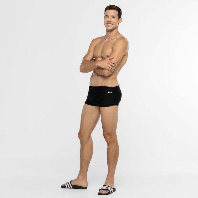O seu cós é com cordão e elástico. Compre agora mesmo sua Sunga Fila Basic 18 II!