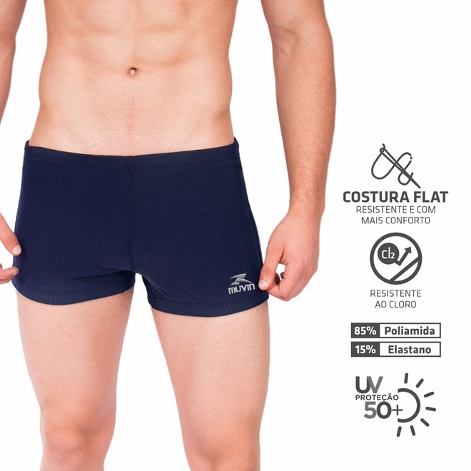 TECIDO RESISTENTE AO CLORO: A sunga é confeccionada em tecido composto por 85% Poliamida e 15% Elastano, malha que garante alta resistência em contato com o cloro, sendo até 10 vezes mais em relação a produtos que não possuem esse tratamento