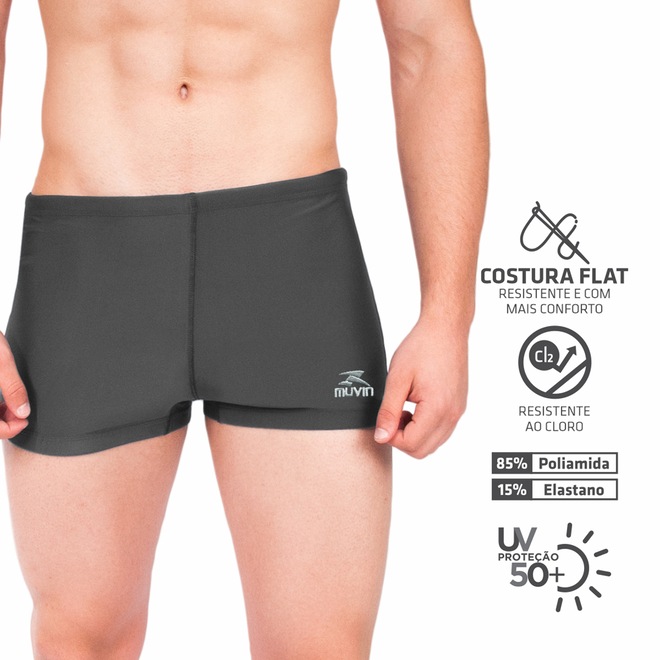 TECIDO RESISTENTE AO CLORO: A sunga é confeccionada em tecido composto por 85% Poliamida e 15% Elastano, malha que garante alta resistência em contato com o cloro, sendo até 10 vezes mais em relação a produtos que não possuem esse tratamento
