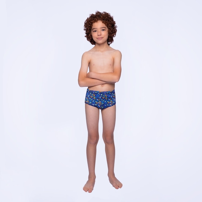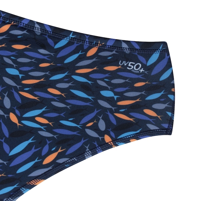 A Sunga Infantil Tradicional Fish é pura diversão para os pequenos! Com estampa sublimada inspirada no universo aquático, ela leva cor e alegria para cada momento na piscina ou na praia.