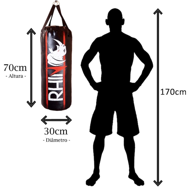 Observação: Sacos de pancadas são vendidos e enviados vazio. O peso vai ser relativo ao material que você utilizar para encher. Nós recomendamos encher com retalho de tecido misto e ela ficará com peso de 15kg a 20kg.