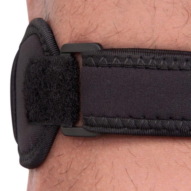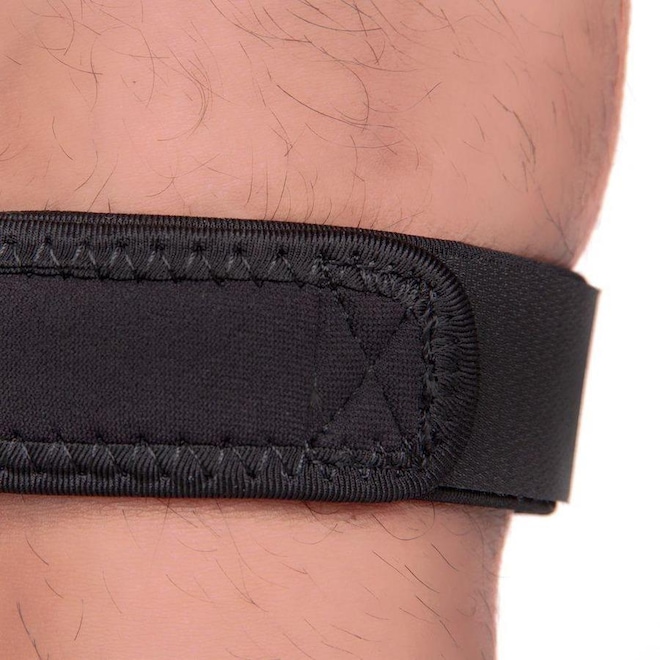 Conheça as características do Suporte Sub Patelar Kestal - Perfil: Atividades físicas - Material: Borracha de cloropreno revestida com tecido 100% poliamida - Detalhamento: Escrita Kestal na parte frontal, tamanho único.