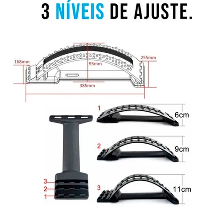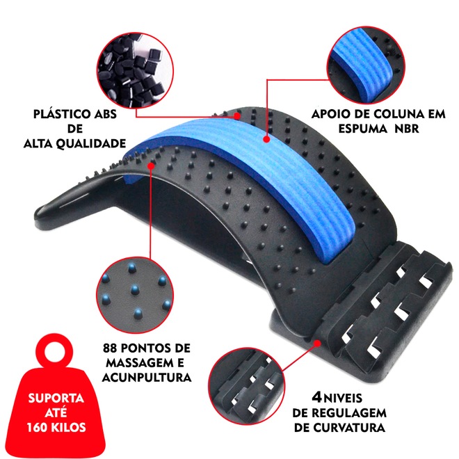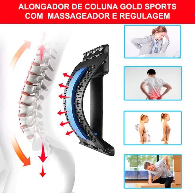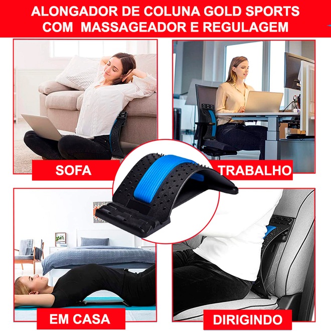 - Suporte Lombar do Massageador Das Costas Gold Sports - Easy Posture possui 4 niveis de ajuste, 88 pinos de acumpultura e magneticos energeticos