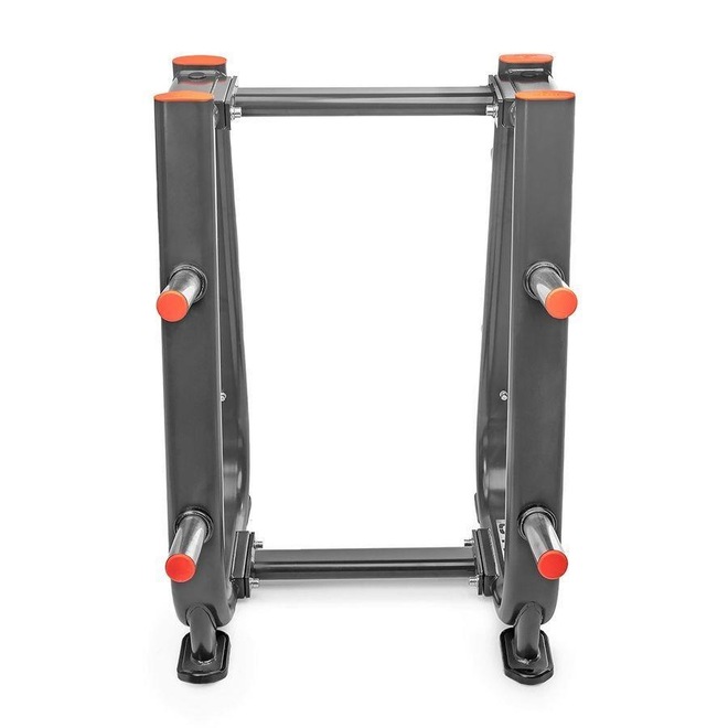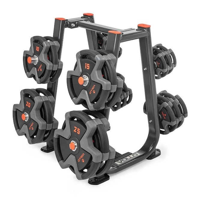 Muito mais do que um design moderno e sofisticado, o Suporte de Anilhas garante a estabilidade na estrutura com pés antiderrapantes, que facilitam na locomoção do posicionamento e evita riscos e atritos no piso.