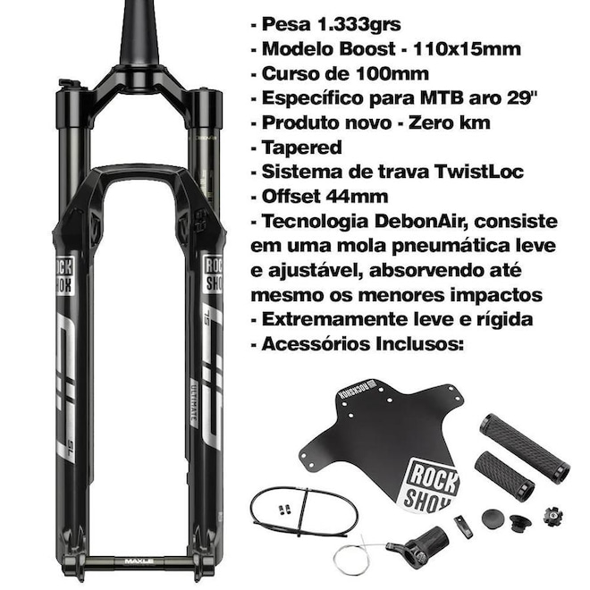 1x Suspensão ROCKSHOX 29" SID SL Ultimate SA DebonAir 100mm BOOST 44mm offset OneLoc