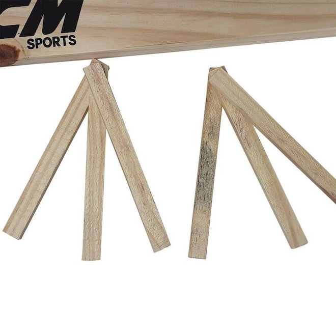 Composição: Taco: Madeira Pinus, Casinhas: Madeira, Bola: Morracha;