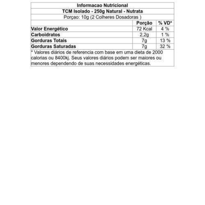 O TCM é um composto à base de lipídeos (triglicerídeos de cadeia média-TCM) extraído do coco refinado.