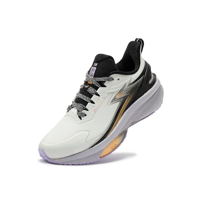 A entressola conta com o material CQT para garantir um excelente amortecimento, enquanto a sola possui um design de sistema de equilíbrio rápido com uma camada rígida de TPU para proporcionar suporte estável e condução eficiente. A sola completa é feita de borracha resistente ao desgaste e antiderrapante, oferecendo estabilidade adicional durante os movimentos.
