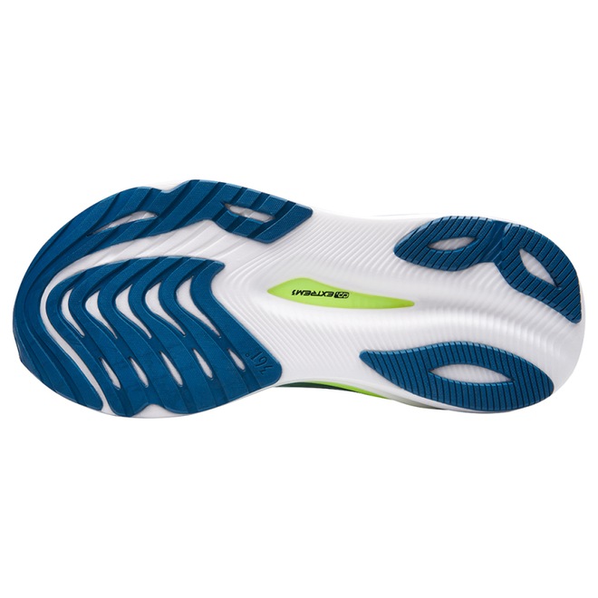 A combinação da espuma Primo e do CQT EXTREM3 cria uma geometria única que proporciona uma sensação simultaneamente macia e dinâmica sob os pés, ideal para corridas de alta performance.