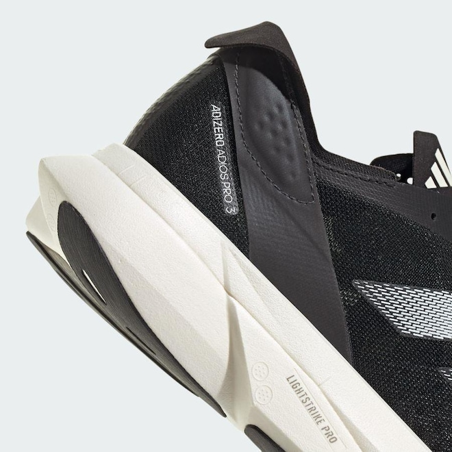 Com a assinatura da adidas, o tênis Adizero Adios Pro 3, combina desempenho de elite com um design moderno e icônico.
