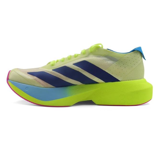 Com produção nacional, ele combina tecnologias premium e excelente custo-benefício. Inspirado na linha Adizero Running, esse modelo traz um cabedal respirável feito de poliamida e poliéster, oferecendo um ajuste seguro e confortável para cada passada.