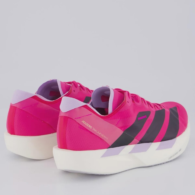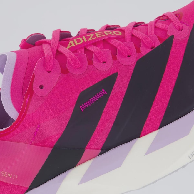 TecnologiasHeel Slinglaunch: Reforço que envolve o calcanhar sem acrescentar peso adicional e que segura perfeitamente o pé, ainda mais consolidado.Lightstrike Pro: Entressola inovadora que fornece amortecimento profissional durante movimentos intensos e velocidade duradoura.LightTraxion: Sistema de tração leve com cravos estrategicamente posicionados para oferecer aderência ideal em diferentes superfícies. Ela proporciona estabilidade e impulsão, reduzindo o peso do solado e favorecendo a performance com agilidade.Adizero®: Calcanhar e língua acolchoados fornecem um ótimo conforto junto ao detalhe do calcanhar Adizero.ENERGYRODS 2.0: Hastes de carbono que ajuda na propulsão e limita a perda de energia.Lightlock: Oferece ajuste firme e um sistema de propulsão que não adiciona peso extra.Continental™: Um solado em borracha aderente para trazer firmeza à sua corrida.Drop: 6mm, ideal para correr com conforto, segurança e naturalidade.Composição cabedal (parte superior): Têxtil com sobreposição de sintéticoPalmilha: EVA forrado e removível, facilita na higienizaçãoForro: Material têxtil levemente acolchoado no calcanharSolado: 4 cm, Borracha resistente e antiderrapanteEntressola: EVA Leve e macioLingueta: Fina e flexívelCor predominante: RosaOrigem: ImportadaGênero: MasculinoAjuste: CadarçoPeso aproximado: 360g o par nº 40