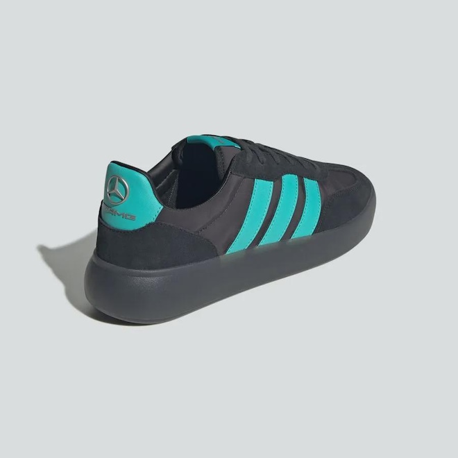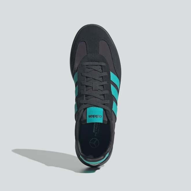 Calce este tênis da equipe de Fórmula 1 da Mercedes - AMG Petronas da adidas para levar sua torcida de corrida com você aonde for. Uma mistura de suede e nylon dá ao cabedal uma textura e estilo únicos feitos para durar. As Três Listras no cabedal nas cores do time e o logo no calcanhar garantem o visual oficial.