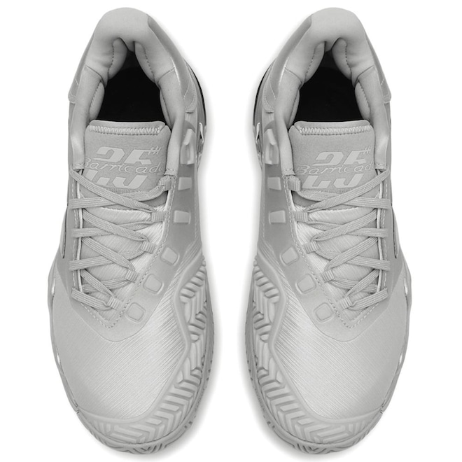 - Detalhamento: Fechamento em cadarços assimétricos firmam o tênis nos pés durante movimentos rápidos e mudanças de direção. A lingueta macia traz o detalhe especial com a escrita "Barricade Anniversary" no topo, enquanto o logo da marca aparece destacado no calcanhar. O design conta com reforços na parte traseira e na biqueira, entregando mais estabilidade a cada passo. De um lado, as tradicionais três listras destacam a identidade da marca; do outro, a inscrição "Barricade" marca presença. No solado, o nome do modelo reforça a assinatura do desempenho em quadra. Acompanha uma bolsa sacola exclusiva de aniversário, perfeita para transportar o calçado com praticidade e manter tudo organizado antes e depois do jogo;