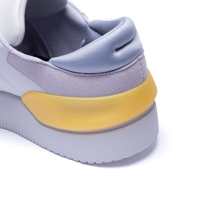 O cabedal (parte superior do calçado) é sintético, a entressola e solado são emborrachados e sua lingueta é acolchoada e flexível.