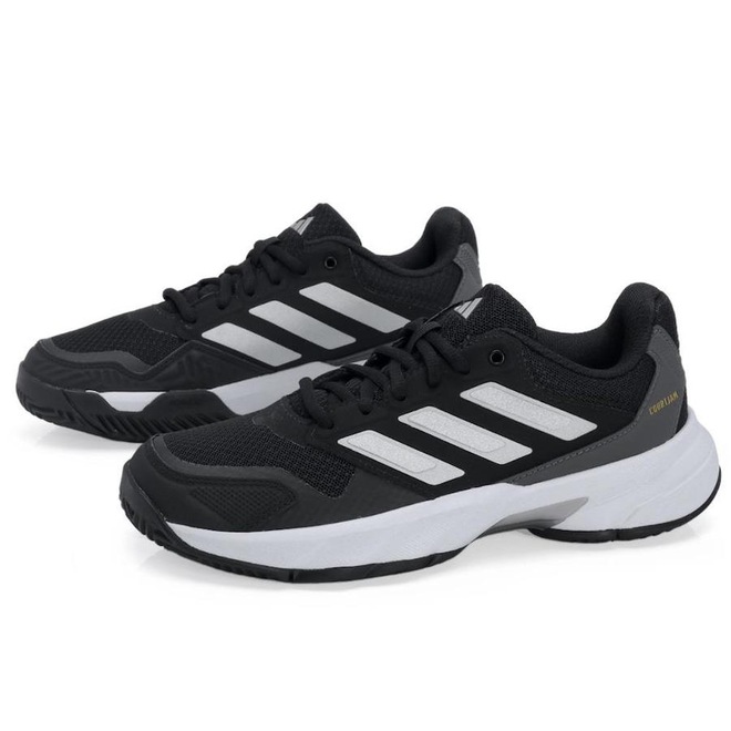Descrição do Tênis adidas Courtjam Control 3 Preto Branco e Prata