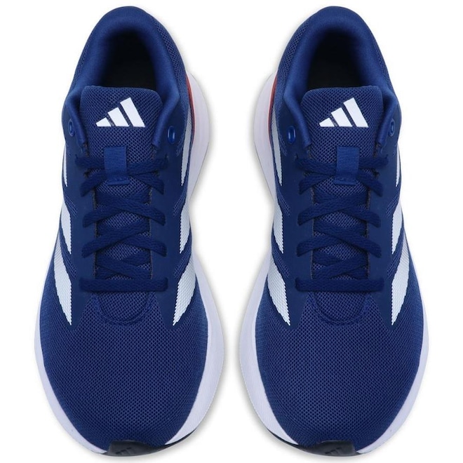 - Detalhamento: Pamilha não removível, cabedal respirável em mesh, fechamento em cadarço convencional, lingueta com o logo e escrita Adidas no topo, três listras referência da marca nas laterais, faixa em cor contrastante na parte de trás na região do calcanhar;
