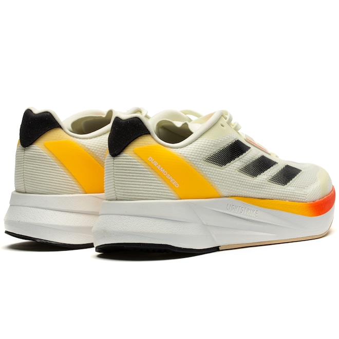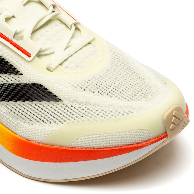 O solado Adiwear, conhecido por sua resistência, assegura durabilidade mesmo em treinos intensos, enquanto o drop de 6 mm equilibra suavidade e impulso durante as corridas.