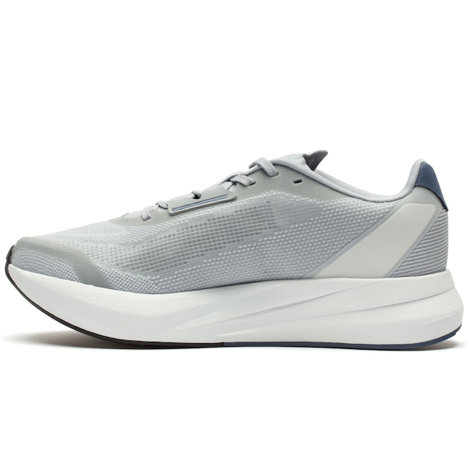 O cabedal em malha elástica oferece leveza, alta respirabilidade e ajuste preciso, garantindo estabilidade em cada movimento.