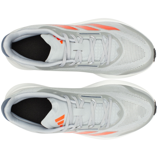O solado Adiwear, conhecido por sua resistência, assegura durabilidade mesmo em treinos intensos, enquanto o drop de 6 mm equilibra suavidade e impulso durante as corridas.