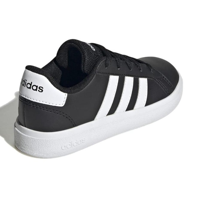 Este tênis infantil adidas tem visual elegante, inspirado no estilo das quadras dos anos 70.
