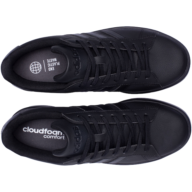 O tênis Grand Court 2.0 tem a tecnologia CloudFoam que é uma espuma em EVA para leveza e absorção dos impactos.