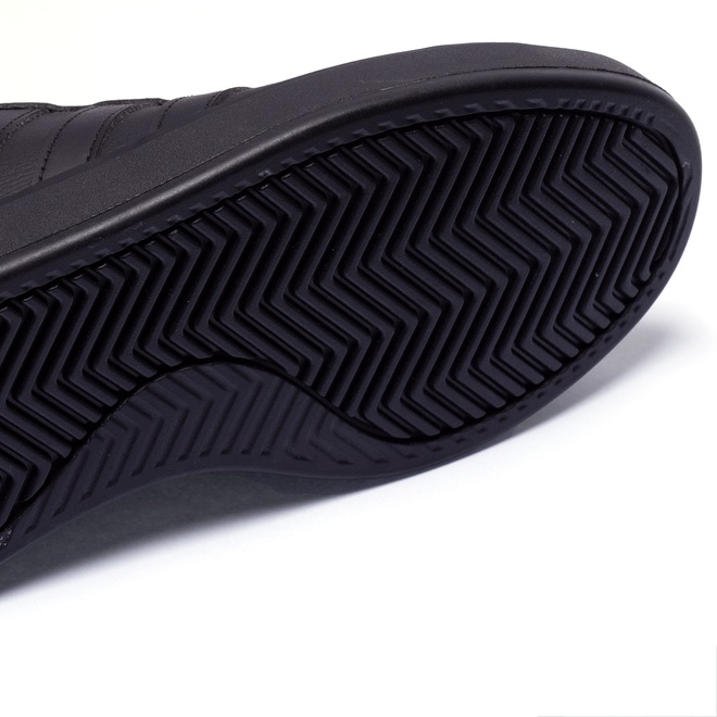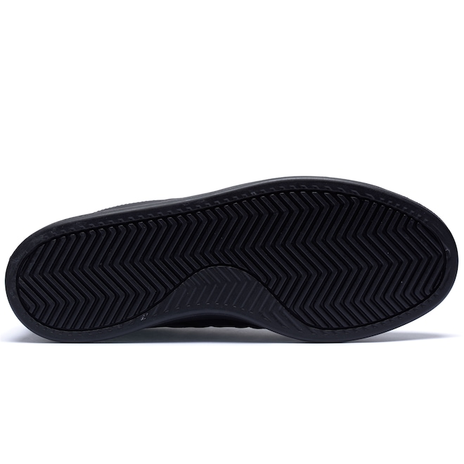 Possui cabedal (parte superior do calçado) em material sintético, entressola e solado emborrachado. Além disso, a palmilha macia e forro com reforço acolchoado.