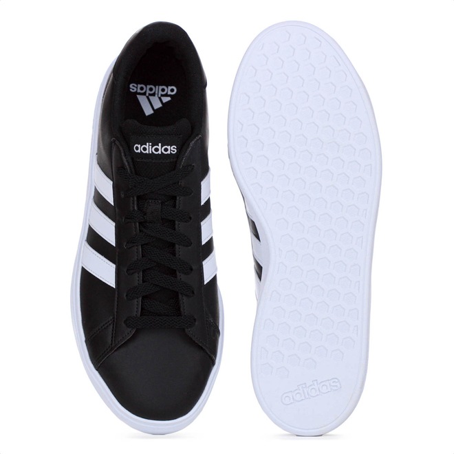 Tênis Adidas Grand Court Base 2.0 Preto e Branco - Masculino: Estilo clássico com conforto insuperável! Ficha Técnica: Marca: Adidas Gênero: Masculino Indicação: Dia a Dia Cabedal: Sintético Solado: Borracha antiderrapante Lingueta: Macia e acolchoada Palmilha: EVA e removível, facilita a higienização Cor: Preto com detalhes em branco Solado: Borracha Ajuste: Cadarço Detalhes: 3 listras nas laterais Conteúdo da embalagem: 1 par de Tênis Adidas Grand Court Base 2.0 Preto e Branco - Masculino Descubra o estilo retrô dos anos 70 com o Tênis Adidas Grand Court Base 2.0. Com cabedal sintético de alta qualidade, oferece durabilidade e um visual sofisticado. O solado de borracha proporciona aderência excelente para movimentações seguras, enquanto a palmilha em EVA garante conforto em cada passo. Perfeito para o dia a dia ou aventuras no skate, este tênis é a fusão de moda e funcionalidade.