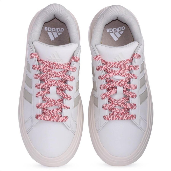Tênis Adidas Grand Court Platform Branco e Vermelho - Feminino Autêntico e estiloso, o tênis Grand Court Platform da Adidas, é a garantia de qualidade e muito conforto em qualquer ocasião. Com cabedal em material sintético e forro interno em têxtil com acolchoamento reforçado, o calçado traz além design elegante, uma sensação envolvente de conforto. Possui detalhe de 3 faixas na lateral do tênis representando a marca da Adidas, além de possuir solado plataforma em borracha, já sua palmilha é feita em EVA removível que oferece suavidade a cada passo e facilita a higienização para manter seu tênis sempre impecável. FICHA TÉCNICA: Gênero: Feminino Indicação: Dia a dia Cabedal: Sintético Cor: Branco com detalhes em Cinza e Vermelho Solado: EVA com partes em Borracha Ajuste: Cadarço Marca: Adidas Conteúdo da embalagem: 1 par de Tênis Adidas Grand Court Platform Branco e Vermelho - Femininoref: M1477H