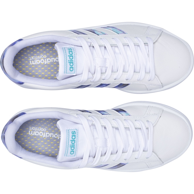 O tênis adidas possui a qualidade em todos seus detalhes e será perfeito para você realizar diversas composições com muito estilo e conforto. O cabedal (parte superior calçado) é em couro, entressola e solado emborrachados, além de conter a CloudFoam que promove absorção dos impactos. A lingueta é flexível, palmilha injetada e forro com reforço acolchoado. Compre já!