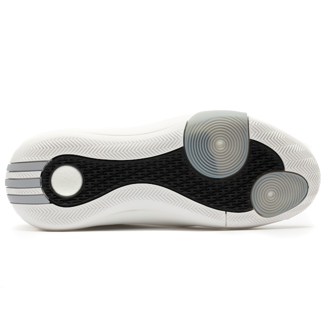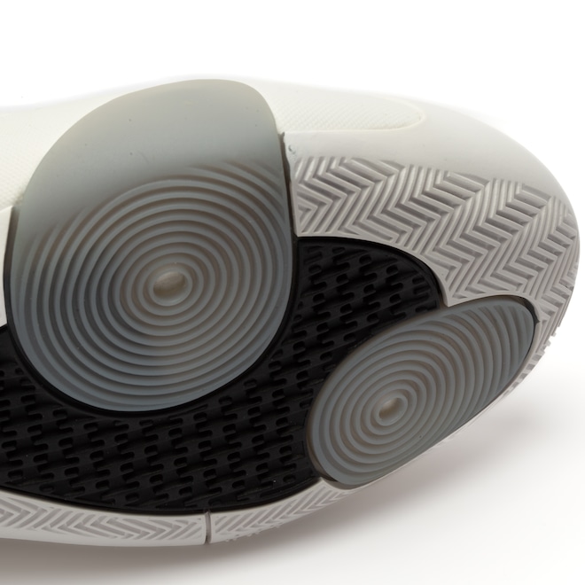 O solado de borracha com padrão de tração avançado oferece aderência superior em todas as direções, permitindo mudanças rápidas de direção e movimentos ágeis sem deslizar.