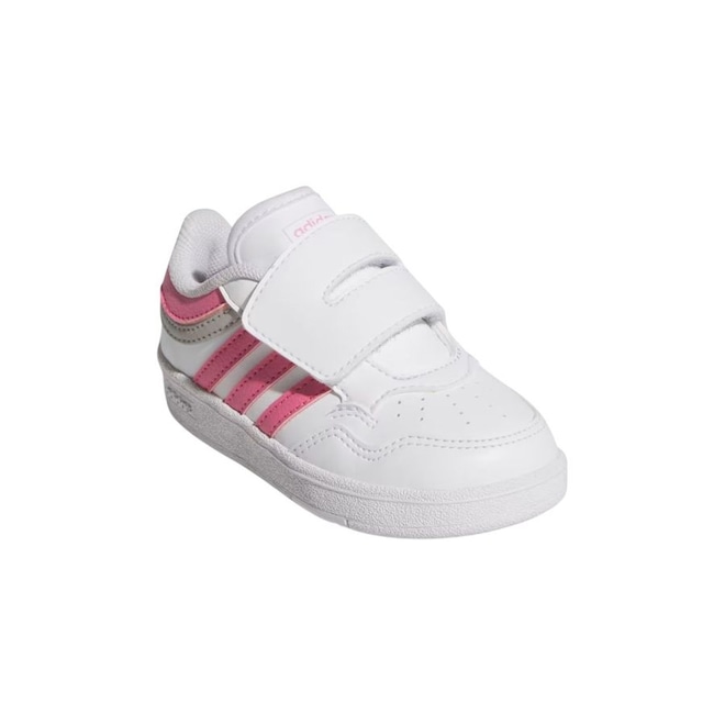 Nome: Tênis Juvenil Adidas Hoops 4.0 Cf I Gênero: Unissex Indicado para: Uso casual Cabedal: Sintético Forro: Colarinho e forro em malha elásticaLingueta: Fina e macia Palmilha: RemovívelSolado: Cupsole de borrachaFechamento: Tira adesiva 1Marca: Adidas Código do Artigo: JI0910