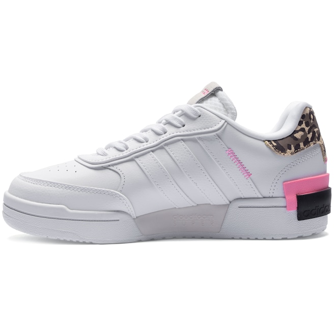 Possui CloudFoam que é uma tecnologia para proporcionar leveza e absorção dos impactos.O tênis adidas feminino conta com cabedal (parte superior do calçado) em couro, garantindo ainda mais charme à peça, a entressola é em EVA e seu solado emborrachado.