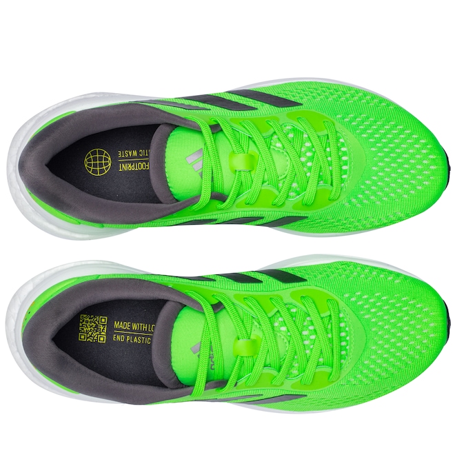 Já a entressola em EVA que junto com a BOOST™ oferece alto desempenho consistente ao longo dos kms.O solado Emborrachado com TPU em zonas estratégicas garantindo 0% de desperdício de material.
